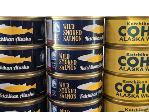 12 Large 6 oz cans of Smoked Wild Alaskan Salmon